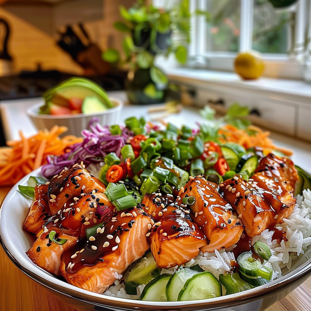 Indulge in the vibrant Honey Sriracha Salmon Bowl, where flaky salmon meets a sweet and spicy glaze, served on a fluffy rice bed with colorful veggies. This dish is not just a meal; it’s an experience that delights your senses, perfect for weeknight dinners or special gatherings. Easy to prepare and visually stunning, it will impress family and friends alike!