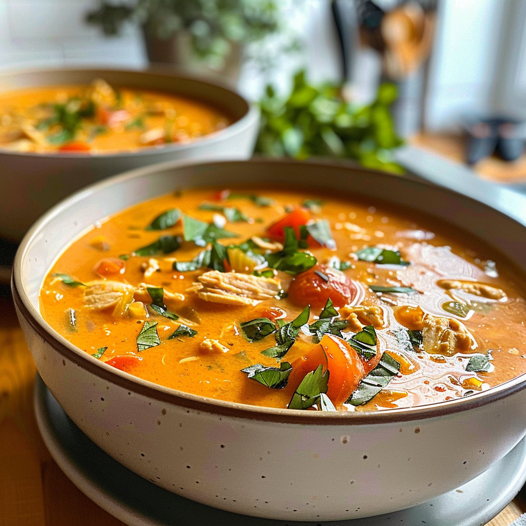 Cooking this creamy chicken tomato soup always reminds me of chilly evenings when my family gathered around the table, sharing stories and laughter over steaming bowls.