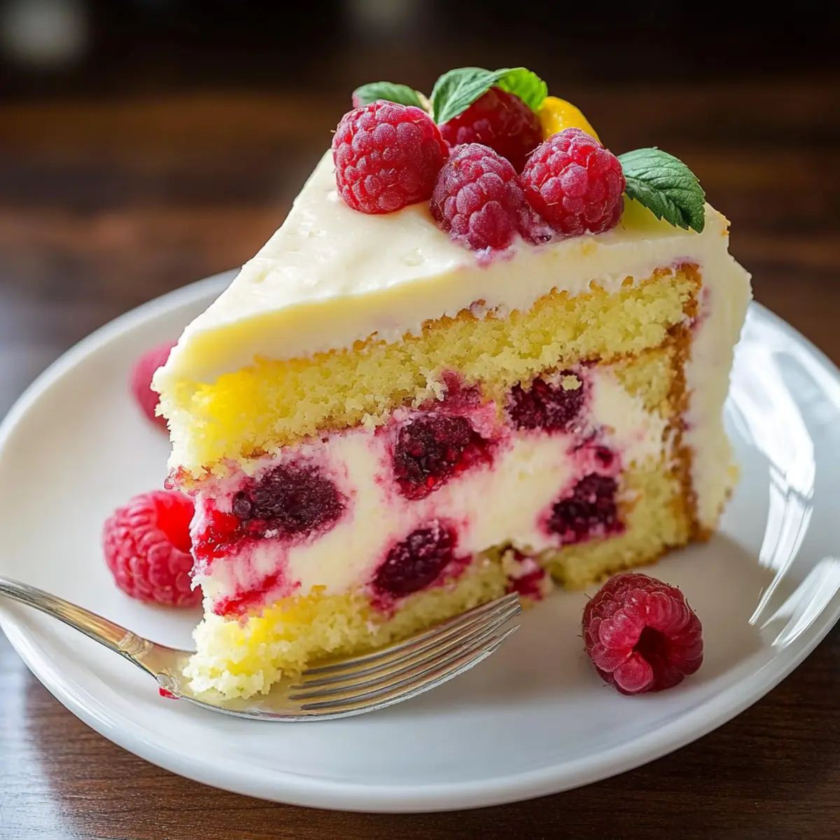 PrintDelightful Raspberry Lemon Cake with Cream Cheese Frosting